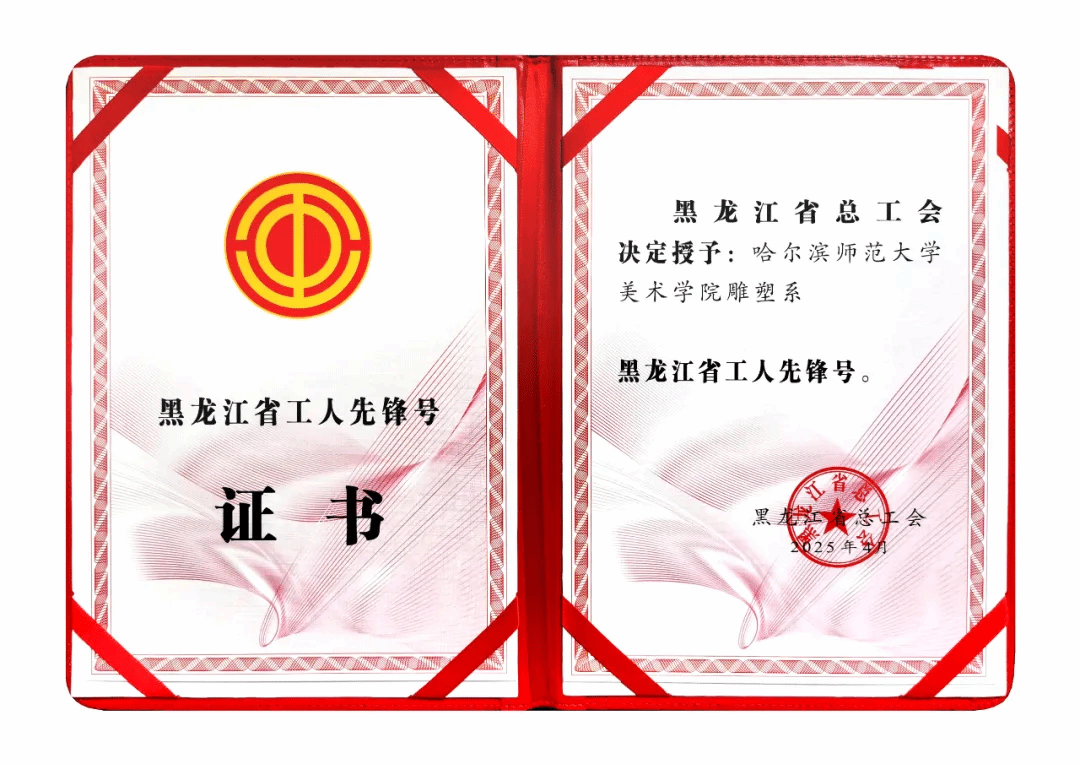 4月29日下午,庆祝中华全国总工会成立100周年省五一劳动奖、工人先锋号颁奖暨第二届“龙江工匠年度人物”发布仪式在黑龙江广播电视台演播厅举行。我校美术学院雕塑系荣获“黑龙江省工人先锋号”荣誉称号。作为黑龙江省创意设计与美育发展的先锋力量,我校美术学院雕塑系始终秉持“国际化、专业化、现代化、特色化”的学科建设理念,以及“兼容并蓄,知行合一”的实践教育原则,以实际行动诠释了“工人先锋号”的精神内涵。