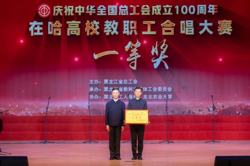 5月16日下午,庆祝中华全国总工会成立100周年暨“中国梦·劳动美——凝心铸魂跟党走 团结奋进新征程”在哈高校教职工合唱大赛决赛在东北农业大学圆满落幕。我校教职工合唱团凭借出色的表现,荣获此次比赛的一等奖。