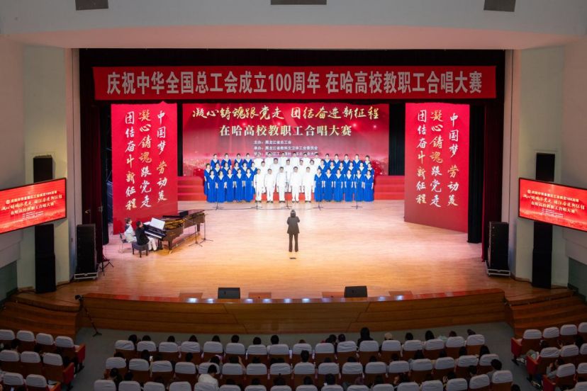 本次大赛由省总工会主办,省教科文卫体工会承办,吸引了众多在哈高校教职工合唱团队的积极参与。经过激烈的初赛选拔,共有12支代表队晋级决赛,600余名教职工用歌声共同庆祝中华全国总工会成立100周年,向百年工运献上最诚挚的祝福。