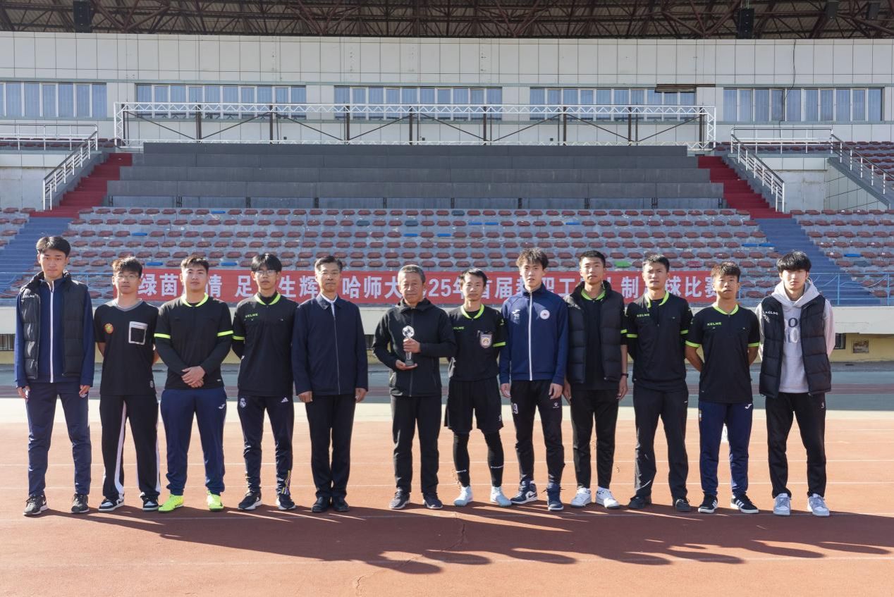 10月11日中午,历时7天激烈角逐的“绿茵燃情 足下生辉”哈尔滨师范大学2025年首届教职工五人制足球比赛在主校区体育场圆满落下帷幕。校长蒋鲲,党委常委、副校长尹剑锋,党委常委、副校长徐国峰,党委常委、副校长李岗到现场观看比赛。闭幕式由校工会副主席李立平主持。