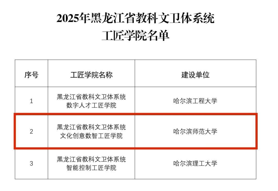 近日,黑龙江省教科文卫体工会正式印发《关于公布 2025 年黑龙江省教科文卫体系统工匠学院名单的通知》(黑教科文卫体工发〔2025〕22 号),我校工会牵头建设的“文化创意数智工匠学院”成功入选,成为在全省3家重点支持的工匠学院(产业工匠学院)之一,标志着我校在弘扬工匠精神、培育高技能人才、服务龙江产业振兴领域迈出关键一步。