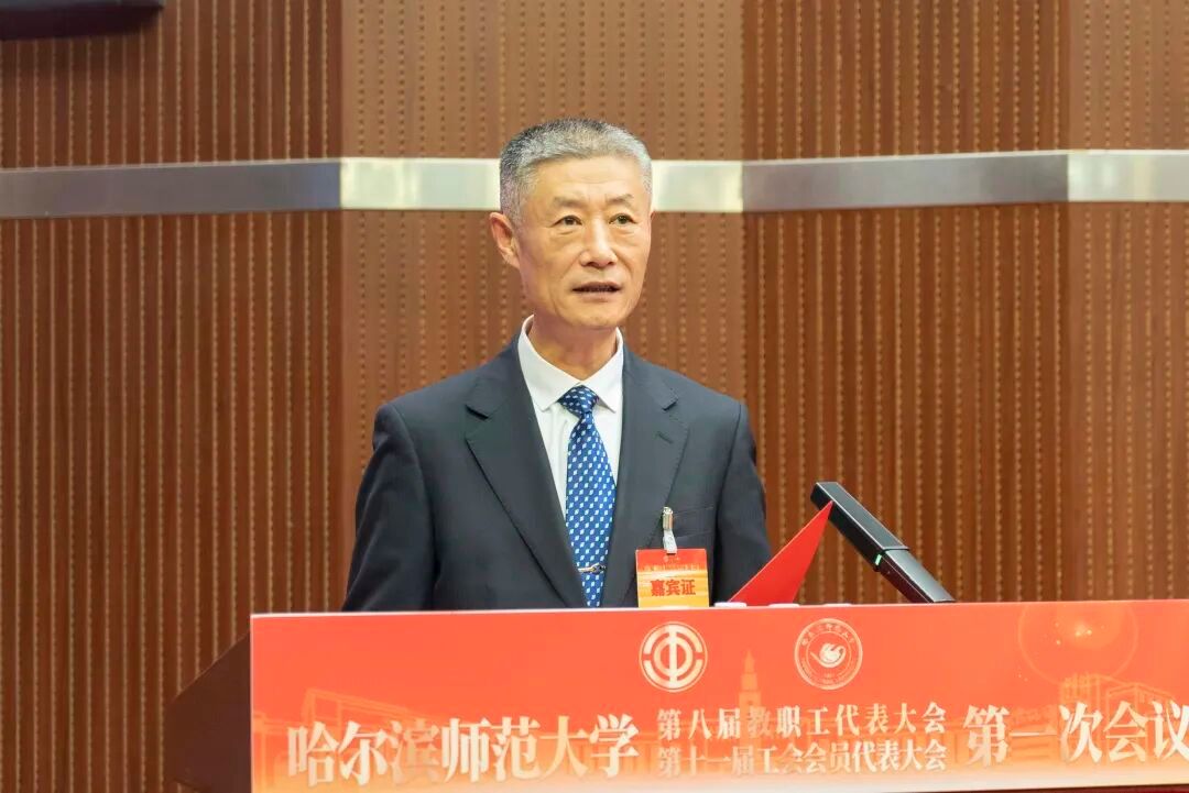 吕光英向大会的召开表示祝贺并对学校近年取得的成绩给予充分肯定。他指出,近年来,哈师大工会组织围绕学校中心工作,在强化教职工思想政治引领、维护教职工合法权益、加强师德师风建设、丰富校园文化生活、助力青年教师成长等方面工作扎实、成效显著。未来,希望哈师大工会组织以习近平新时代中国特色社会主义思想为指导,深入学习贯彻党的二十届四中全会精神和省委十三届八次全会精神,主动找准定位、扛起使命,在强化思想政治引领、服务中心工作大局、深化民主政治建设、推进工会改革创新等方面继续深耕细作,用心解决教职工急难愁盼问题,增强教职工的获得感、幸福感、安全感,在服务学校发展和教职工成长中展现新的更大作为。