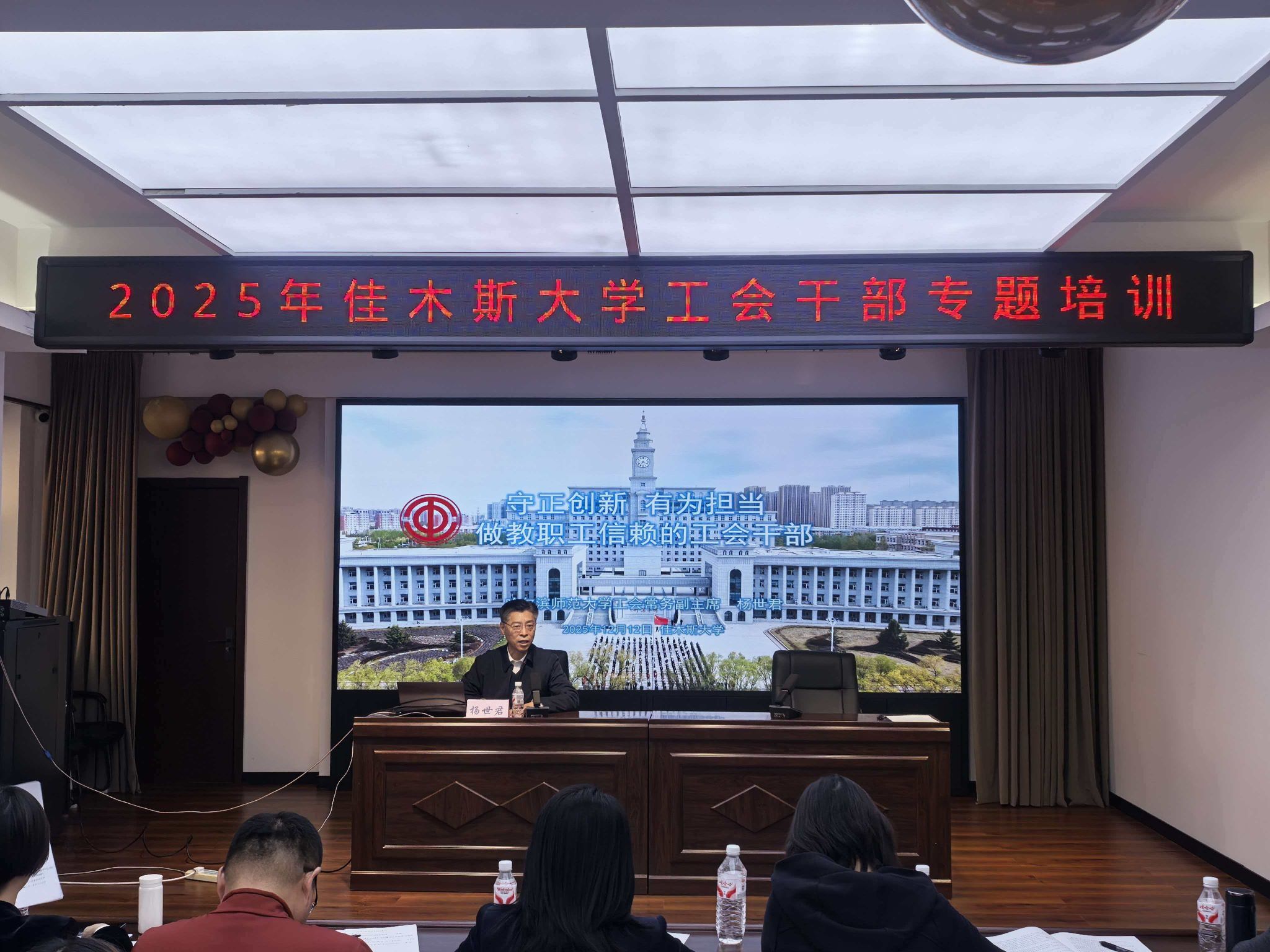 12月12日,我校工会常务副主席杨世君受邀到佳木斯大学2025年工会干部专题培训班讲座。佳木斯大学工会常务副主席单猛及全校工会专职工作人员、各分工会主席及各分工会相关负责同志参会,共探基层工会工作提质路径。