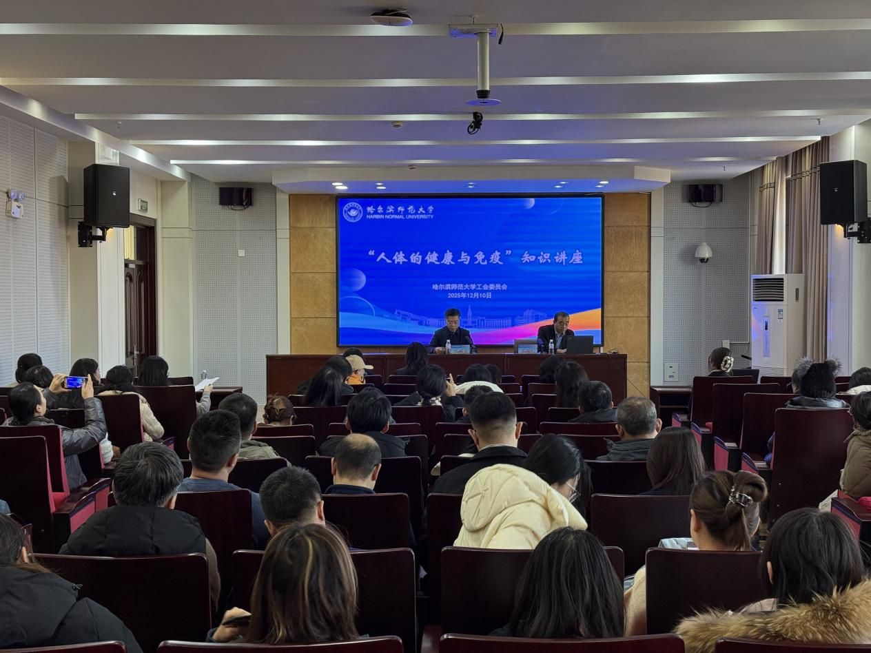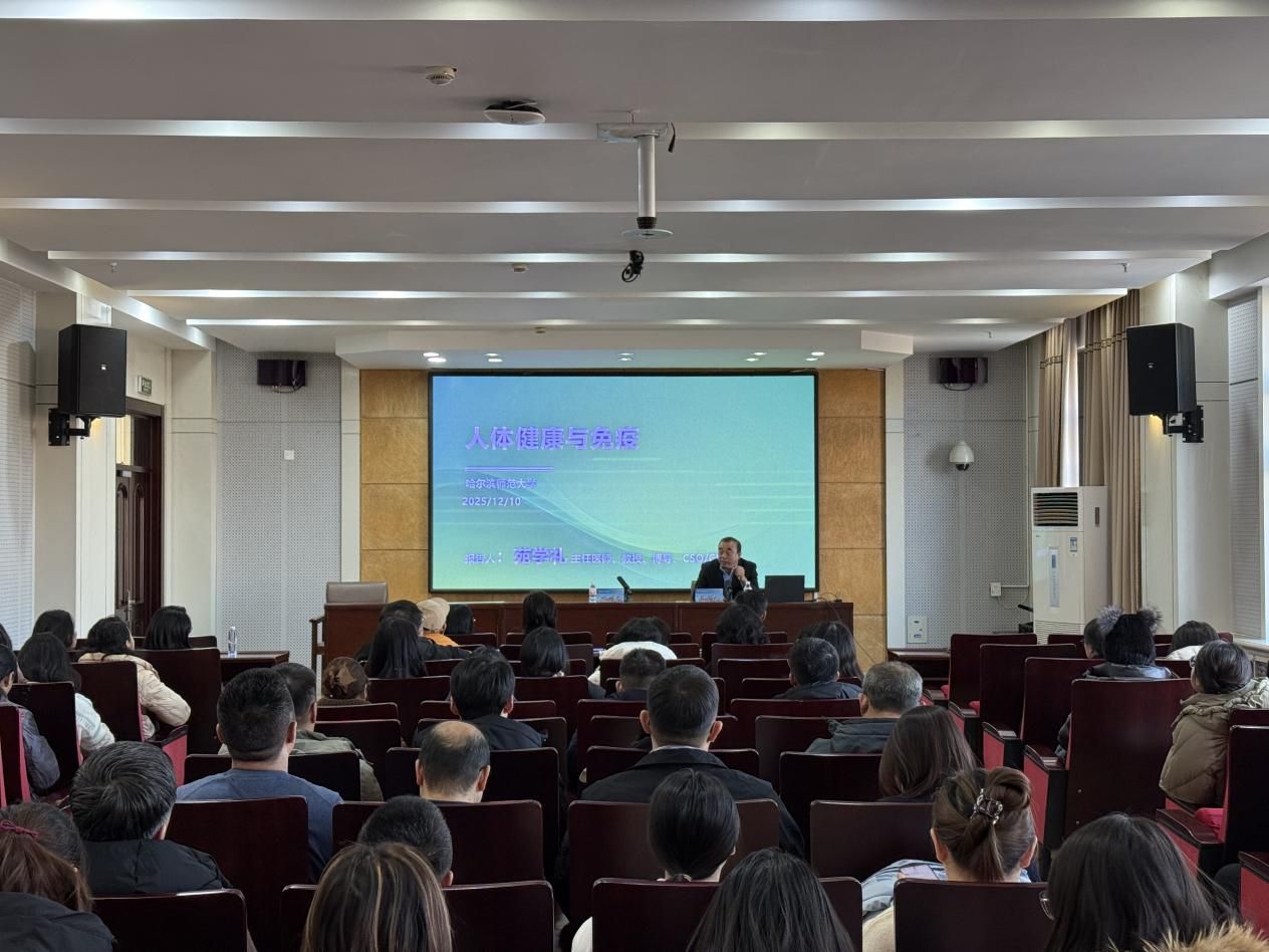 为普及健康知识、提升教职工健康素养,营造科学预防与健康生活的校园氛围,12月10日下午,校工会在我校主校区行知楼746室举办人体的健康与免疫讲座。讲座特邀请哈尔滨医科大学附属第四医院肿瘤科主任、教授苑学礼博士主讲,近100名教职工参加讲座。讲座由校工会常务副主席杨世君主持。