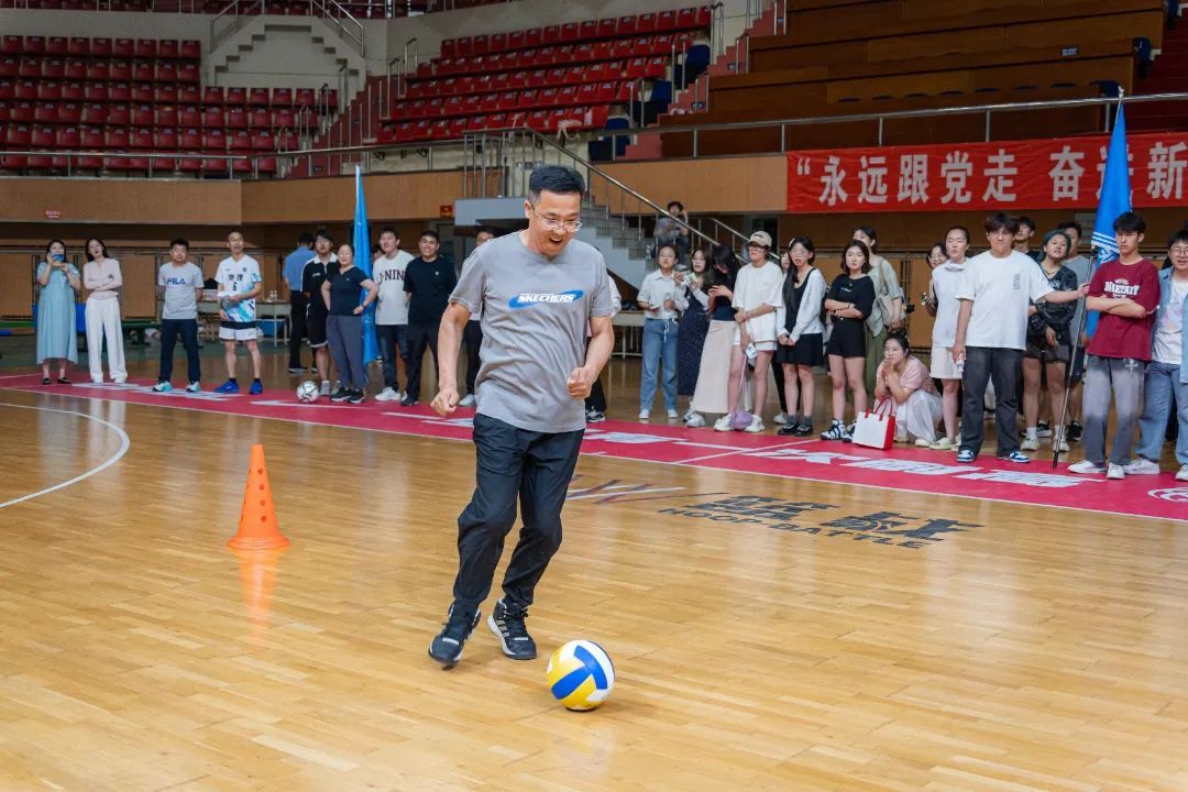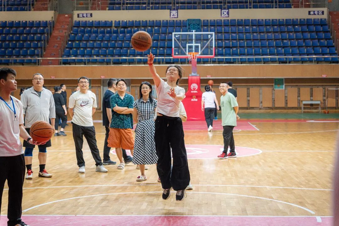 教师们化身“神射手”,全神贯注、一气呵成、频频命中,篮球在空中划过一道道优美的弧线,连续漂亮的空心入网和打板命中引爆欢呼,精准入网恰似科研中对精度的不懈追求。